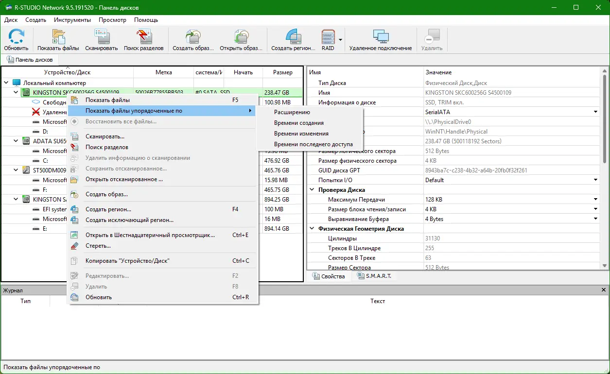 Интерфейс R-Studio построен по принципу стандартного проводника Windows, что делает его интуитивно понятным. После запуска программа автоматически сканирует подключённые носители, отображая как существующие, так и удалённые или повреждённые разделы. Пользователь может инициировать быстрое или глубокое сканирование, в зависимости от степени повреждения данных. Результаты отображаются в древовидной структуре, где файлы можно фильтровать, сортировать и предварительно просматривать перед восстановлением.