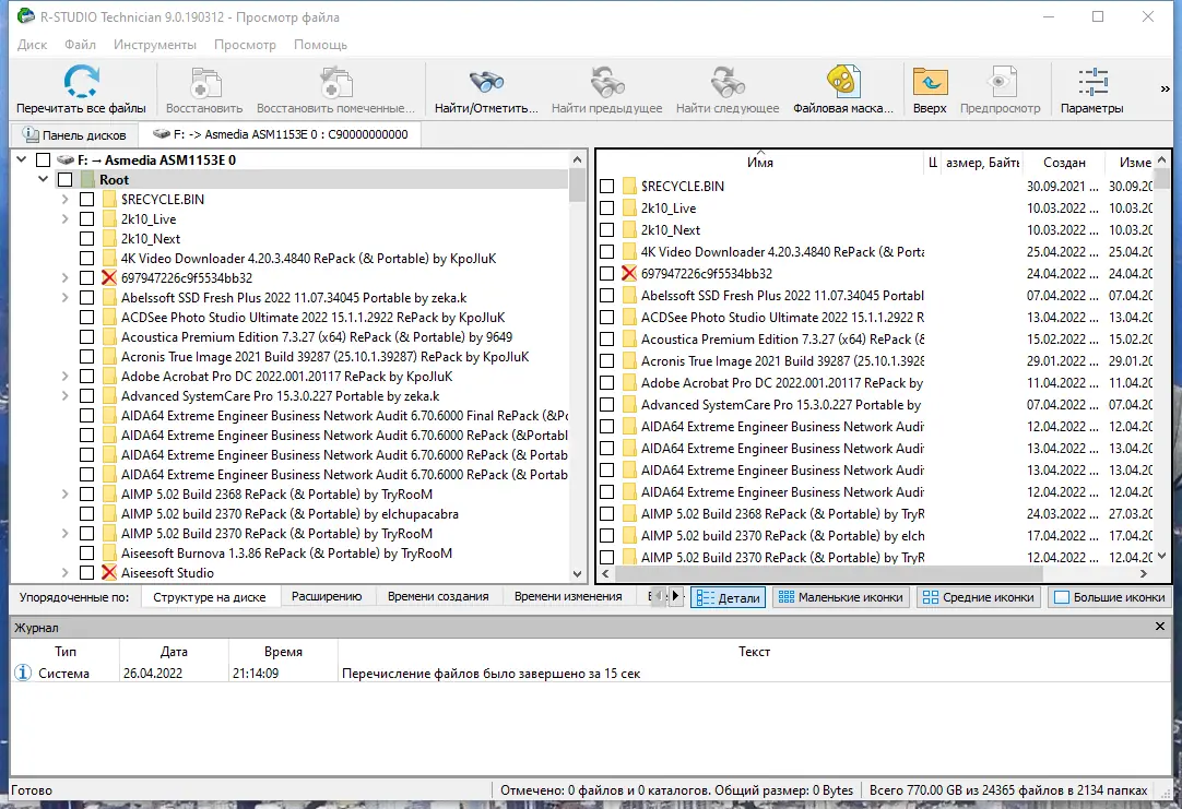 Интерфейс R-Studio построен по принципу стандартного проводника Windows, что делает его интуитивно понятным для большинства пользователей. После запуска приложение автоматически определяет все подключённые устройства и позволяет выбрать диск или раздел для анализа. Доступны два режима сканирования — быстрый и глубокий, последний рекомендуется при серьёзных повреждениях или отсутствии видимых данных. После обнаружения файлов пользователь может предварительно просмотреть их содержимое, отфильтровать по типу, дате или размеру, а затем сохранить на любой доступный носитель.