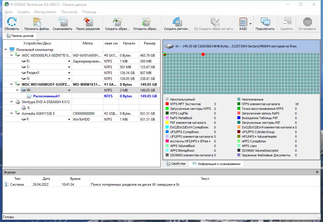 Интерфейс R-Studio построен по принципу стандартного проводника Windows, что упрощает навигацию и работу с дисками. После запуска программа автоматически сканирует подключённые устройства и отображает их структуру, включая удалённые или повреждённые разделы. Пользователь может инициировать быстрое или глубокое сканирование, в зависимости от степени повреждения данных.