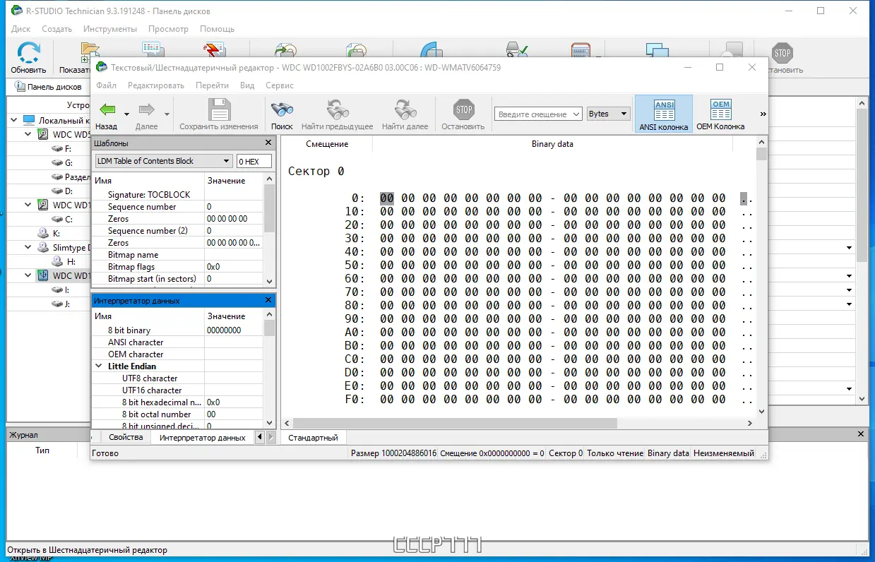 - Встроенный шестнадцатеричный редактор для просмотра и ручного редактирования данных на уровне секторов