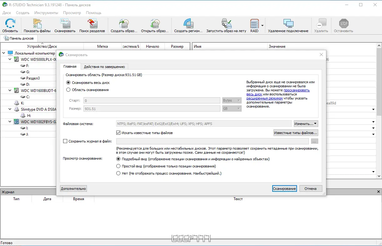 Интерфейс R-Studio построен по принципу стандартного проводника Windows, что делает его интуитивно понятным. После запуска программа автоматически обнаруживает все подключённые носители, включая внешние диски, флешки и сетевые устройства. Пользователь может выбрать диск или раздел для сканирования, указав тип анализа — быстрый или глубокий. Глубокое сканирование позволяет находить файлы даже при серьёзных повреждениях структуры диска.
