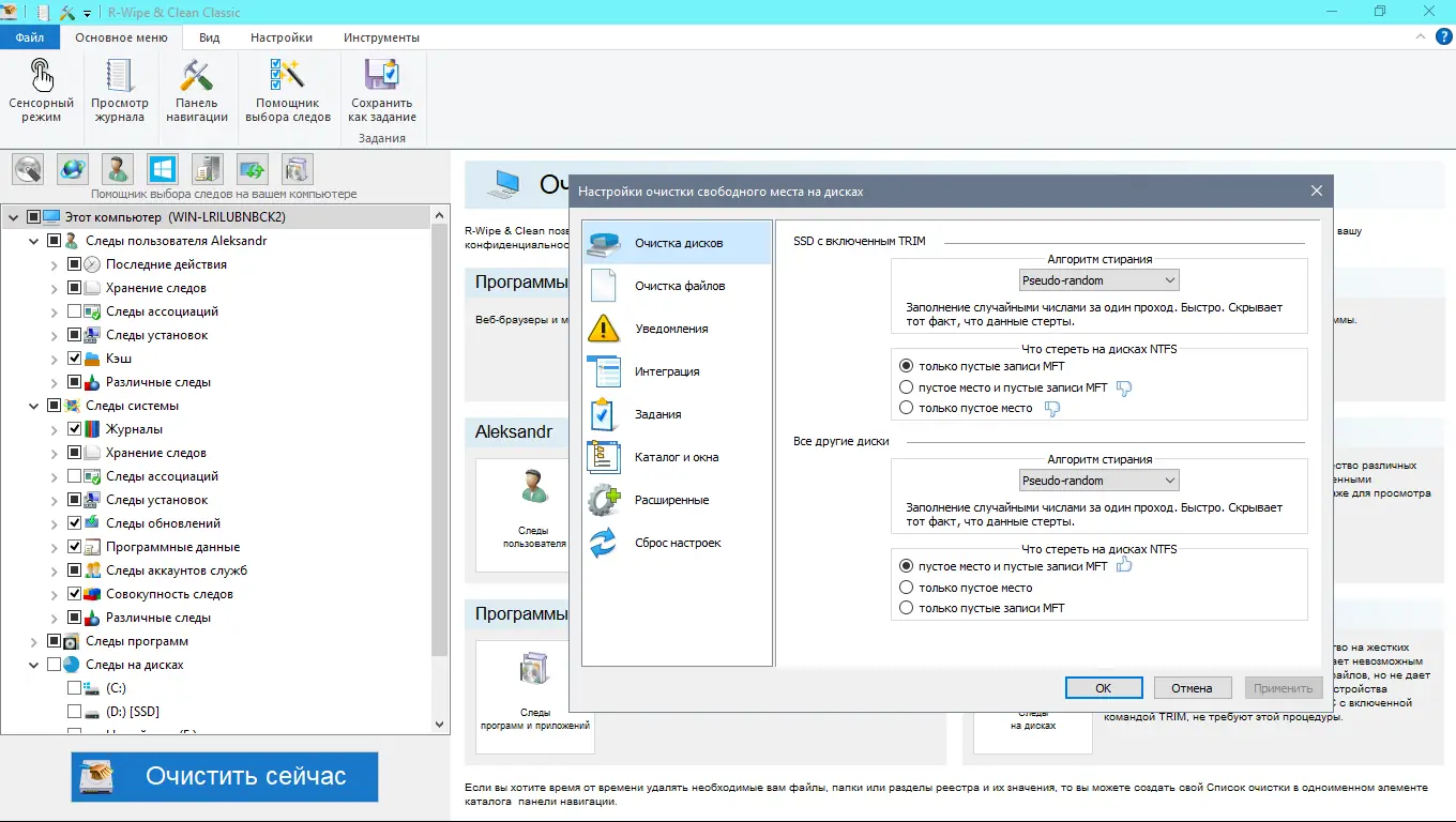 Использование R-Wipe & Clean не требует специальных знаний. После запуска приложение отображает список доступных для очистки категорий: временные файлы, журналы, данные браузеров, записи реестра и другие. Пользователь может выбрать нужные элементы вручную или применить предустановленный профиль. Для автоматизации процесса предусмотрена функция создания задач, которые запускаются при входе в систему, завершении работы браузера или по расписанию. Также доступно удаление файлов напрямую из проводника Windows с помощью контекстного меню, что упрощает повседневное использование. Дополнительно можно настроить горячие клавиши, скрытый режим работы и парольную защиту доступа к программе.