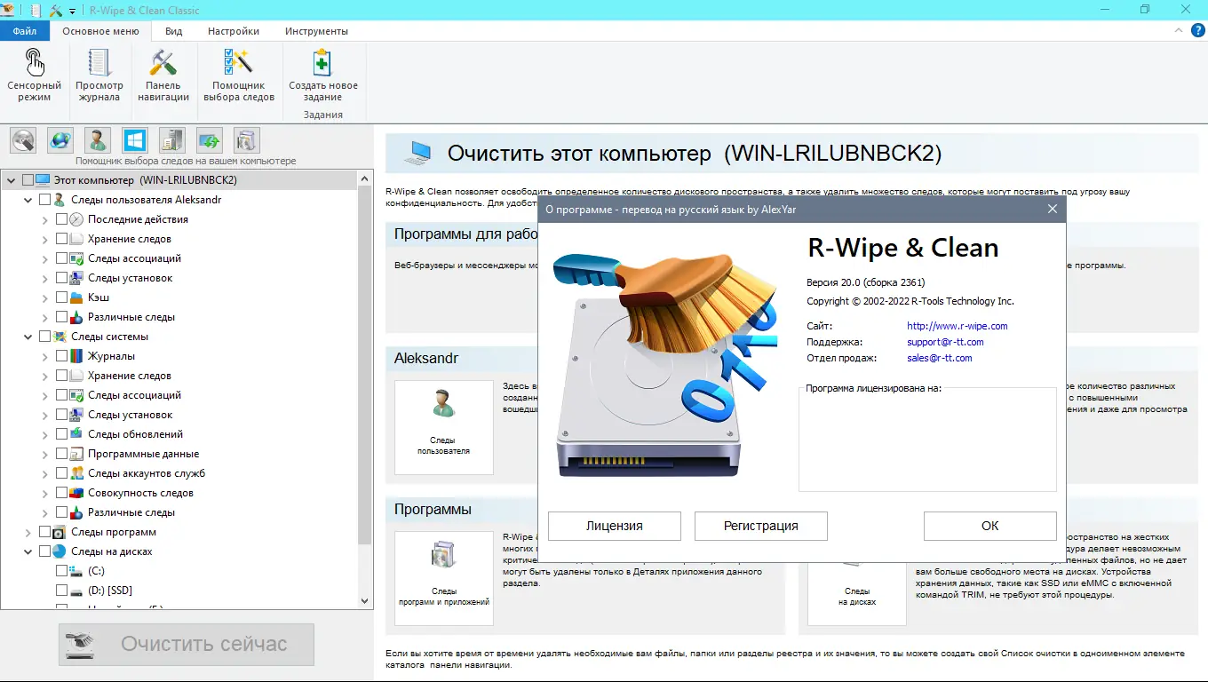 Программа R-Wipe & Clean предназначена для глубокой очистки системы от временных файлов, следов активности пользователя и данных, остающихся после работы приложений. Она обеспечивает высокий уровень конфиденциальности и способствует оптимизации дискового пространства за счёт безопасного удаления ненужной информации. Инструмент совместим с различными версиями Windows и поддерживает работу с файловыми системами FAT и NTFS.