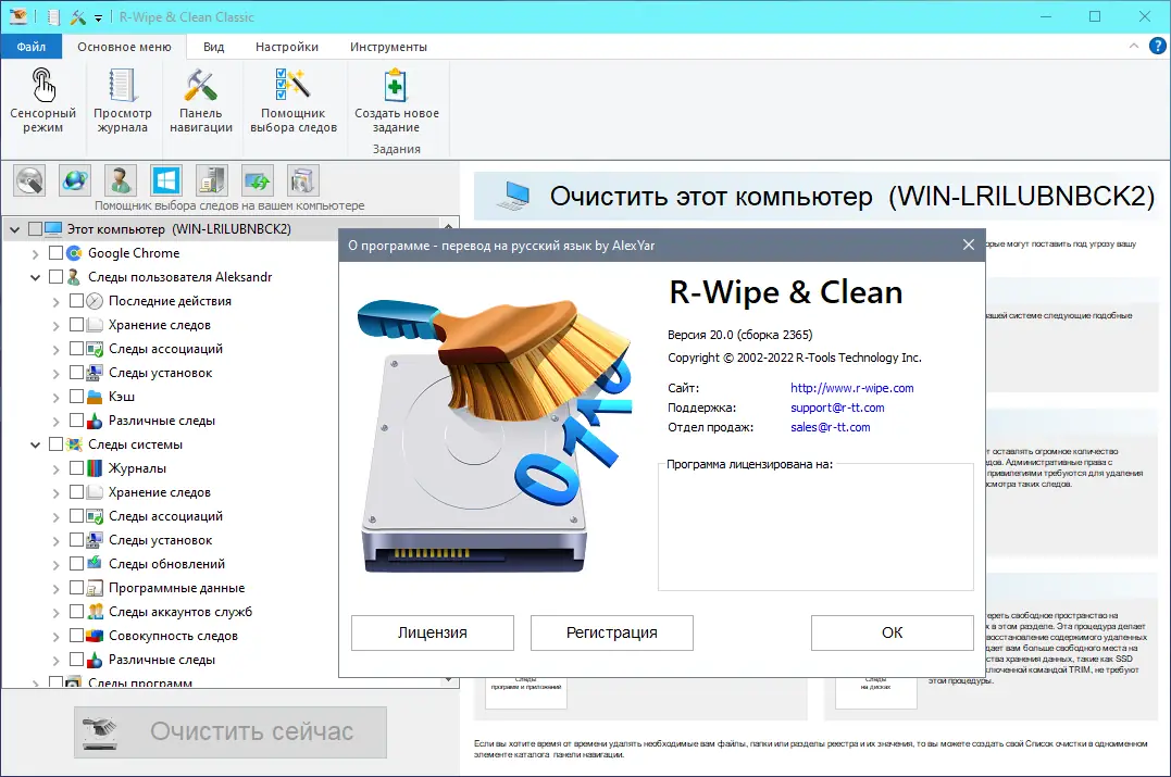 R-Wipe & Clean — это мощная система очистки и оптимизации, разработанная для безопасного удаления временных файлов, следов активности и данных, которые могут угрожать конфиденциальности пользователя. Программа эффективно удаляет мусор из операционной системы, браузеров и сторонних приложений, освобождая дисковое пространство и повышая общую производительность компьютера. Благодаря поддержке современных алгоритмов удаления данные невозможно восстановить даже с помощью специализированного программного обеспечения.