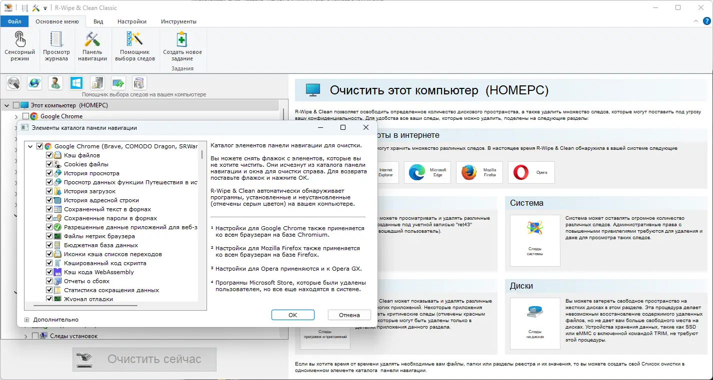 R-Wipe & Clean — это мощная утилита для комплексной очистки системы от временных, кэшированных и следовых данных. Программа позволяет не только удалять отдельные файлы и папки, но и проводить глубокую очистку всего дискового пространства, включая свободные кластеры и скрытые области файловой системы. Она поддерживает работу с файловыми системами FAT и NTFS, а также обеспечивает безопасное удаление информации, хранящейся в Master File Table, что особенно важно для полного уничтожения следов ранее удалённых объектов.