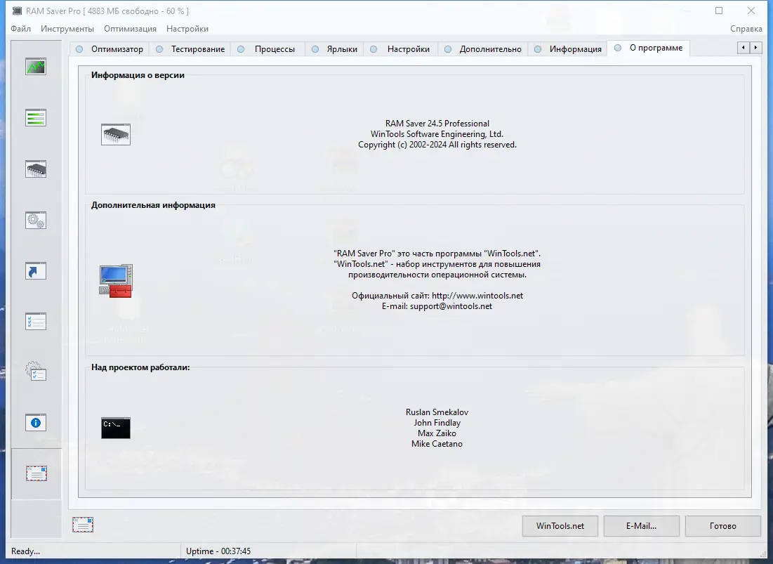 RAM Saver — это мощное решение для управления и оптимизации оперативной памяти, направленное на повышение общей производительности системы. Программа эффективно освобождает ресурсы, устраняет утечки памяти и обеспечивает стабильную работу даже при высокой нагрузке. Подходит как для опытных пользователей, так и для тех, кто ищет простой способ ускорить свой компьютер.