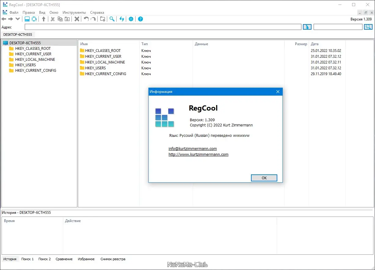 - Поддержка работы с резервными копиями и возможность восстановления реестра из ранее сохранённого состояния.