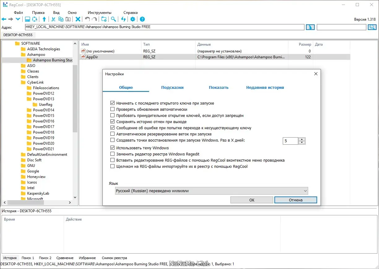 Одной из ключевых особенностей RegCool является возможность отмены и повтора действий, что минимизирует риски при ручном редактировании критических параметров системы.