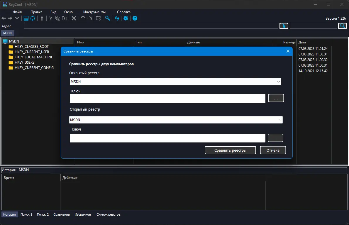 Сравнение двух состояний реестра — ключевая особенность RegCool, которая выделяет её среди аналогов