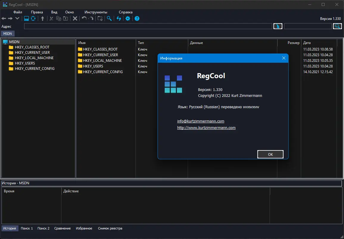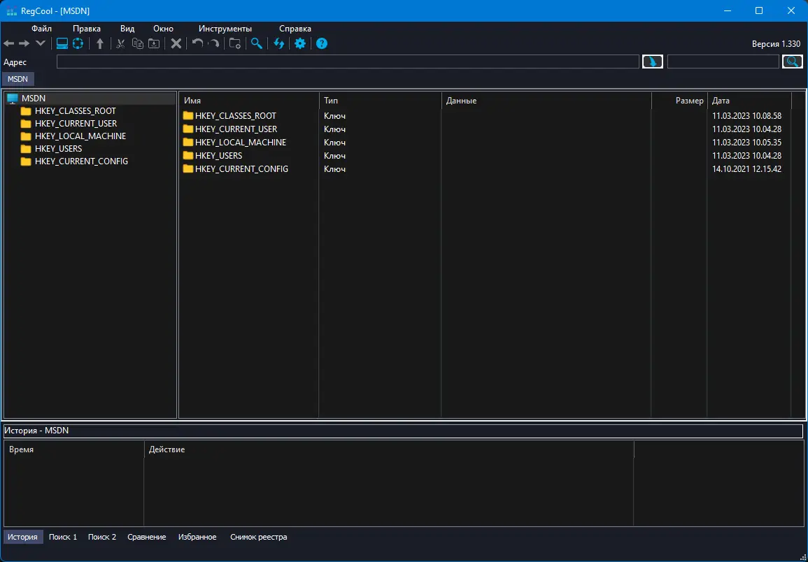 RegCool — это продвинутый редактор системного реестра с интуитивным интерфейсом, напоминающим Проводник Windows, и расширенными функциями для эффективного управления и оптимизации реестра операционной системы. Программа позволяет быстро находить, редактировать, сравнивать и восстанавливать ключи реестра, обеспечивая стабильность и производительность компьютера. С её помощью можно легко выполнять тонкую настройку системы, а также проводить диагностику и устранение неполадок на уровне реестра.