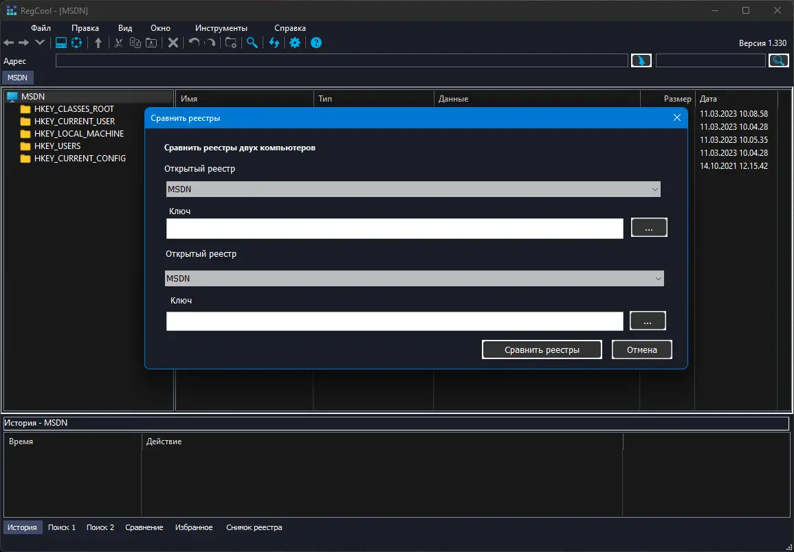 Одним из ключевых преимуществ RegCool является встроенная функция сравнения реестров, которая помогает выявлять нежелательные или вредоносные изменения в системе.