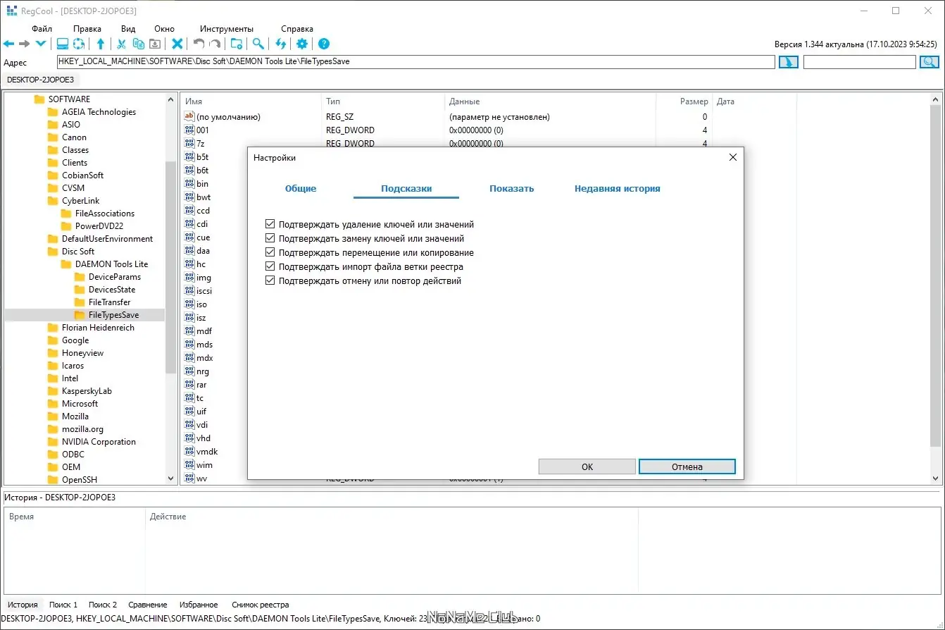 Особое преимущество RegCool — возможность сравнивать снимки реестра, что особенно полезно при анализе изменений после установки программ или обновлений.