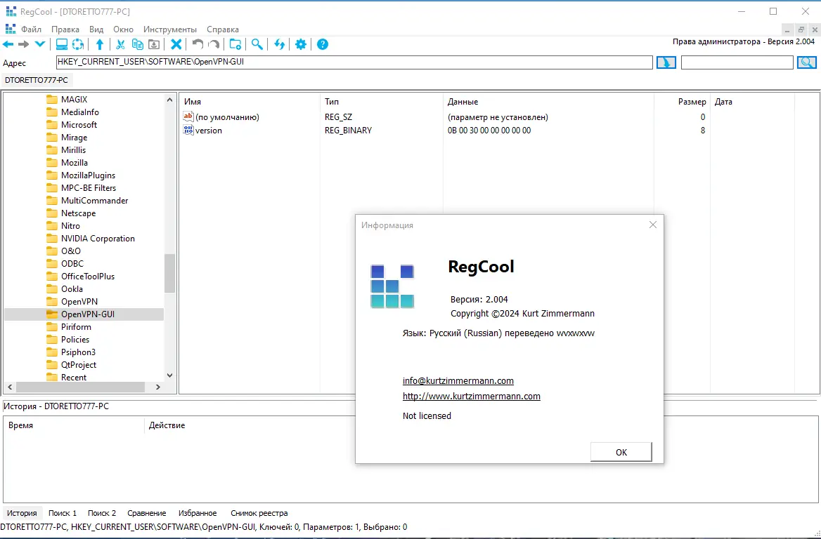 RegCool доступен в нескольких версиях, включая 32- и 64-битные сборки, а также портативные варианты от разработчика. Программа поддерживает запуск без прав администратора, что повышает безопасность при выполнении базовых операций. Недавние обновления добавили возможность объединения .reg-файлов и экспорт избранных ключей, что расширяет функциональность. Поддержка греческого языка и улучшения интерфейса делают использование более комфортным.