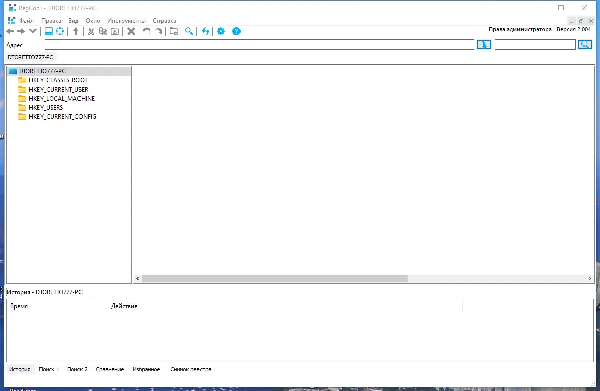Использование RegCool не требует глубоких знаний, однако программа предоставляет широкие возможности для продвинутых пользователей. После запуска отображается древовидная структура реестра, с которой можно взаимодействовать через контекстное меню или горячие клавиши. Для поиска нужного параметра достаточно ввести запрос — система просканирует весь реестр менее чем за десять секунд. Поддержка операций копирования, вырезания и вставки делает редактирование ключей максимально гибким.