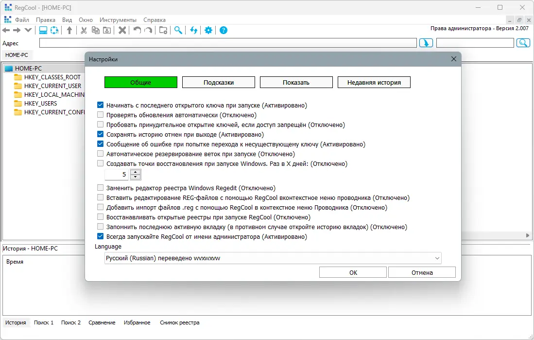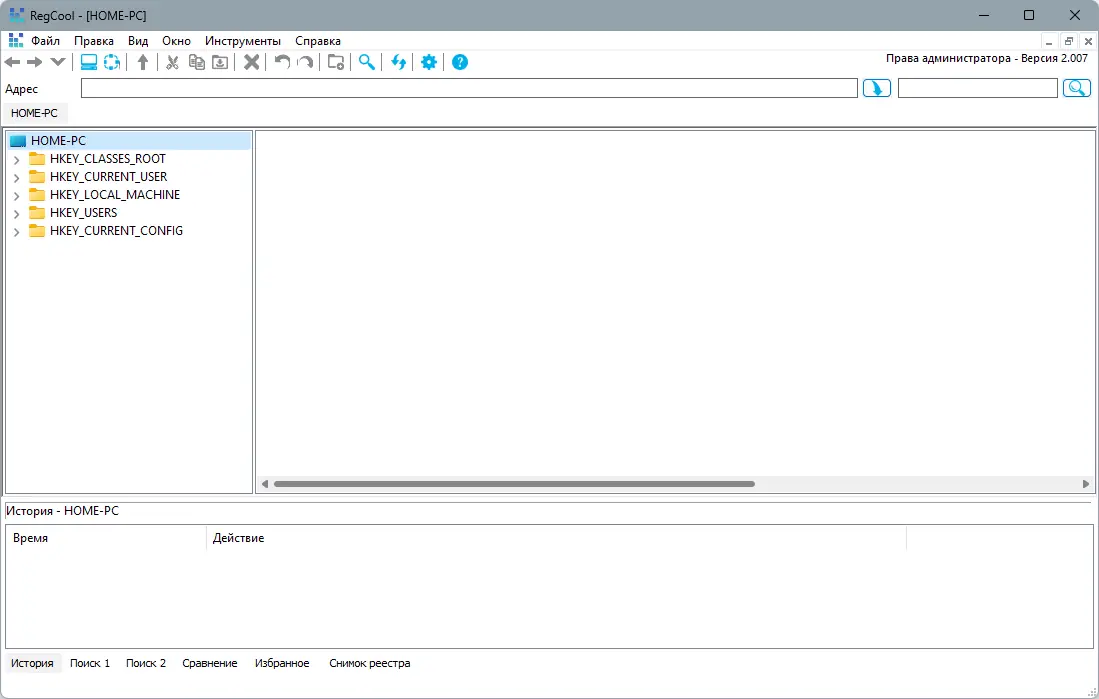 Работа с RegCool не требует глубоких технических знаний, хотя программа предоставляет доступ к критически важным компонентам системы. После запуска отображается древовидная структура реестра, с которой можно взаимодействовать с помощью контекстного меню или горячих клавиш. Для поиска используется строка поиска с фильтрацией по ключам, значениям или данным. Перед внесением изменений рекомендуется создать точку восстановления или резервную копию. Также доступна функция отмены последних действий, что повышает безопасность редактирования.