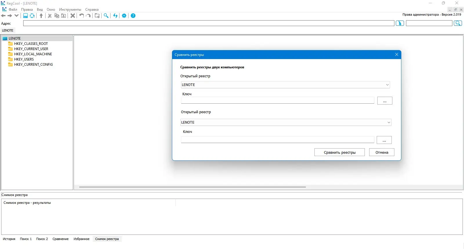 - Поддержка сравнения реестров для выявления различий между состояниями системы