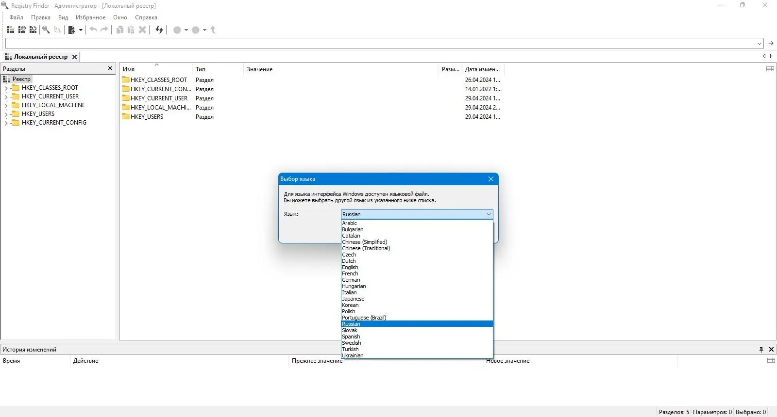 - Программа поддерживает как локальные, так и сетевые реестры, не требуя запуска встроенных системных инструментов.