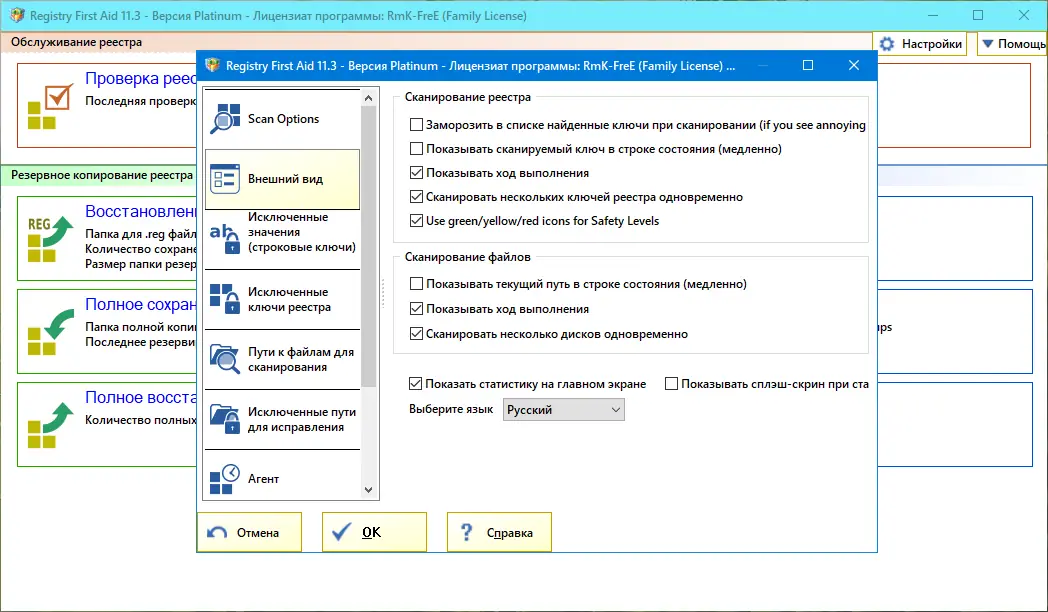 - Поддерживается функция резервного копирования реестра перед внесением изменений, что гарантирует безопасность системы в любой момент.