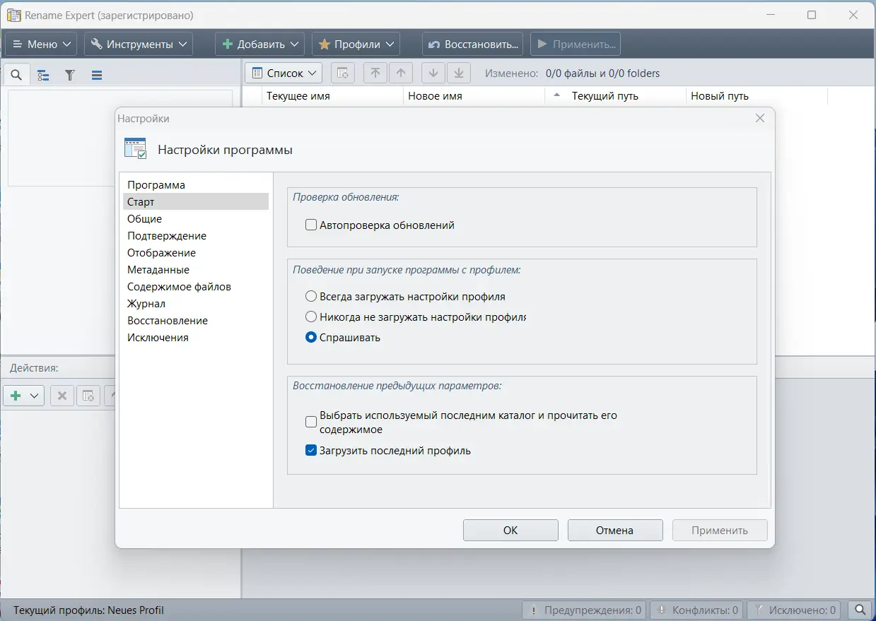 - Сохранение часто используемых правил переименования в виде профилей