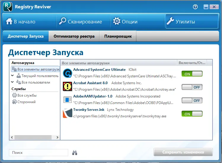- Управление автозагрузкой для сокращения времени запуска системы.
