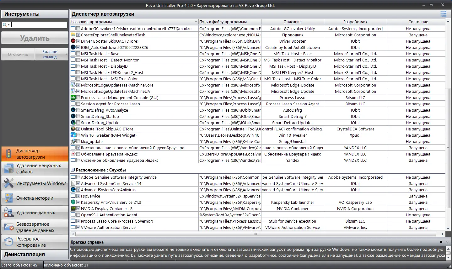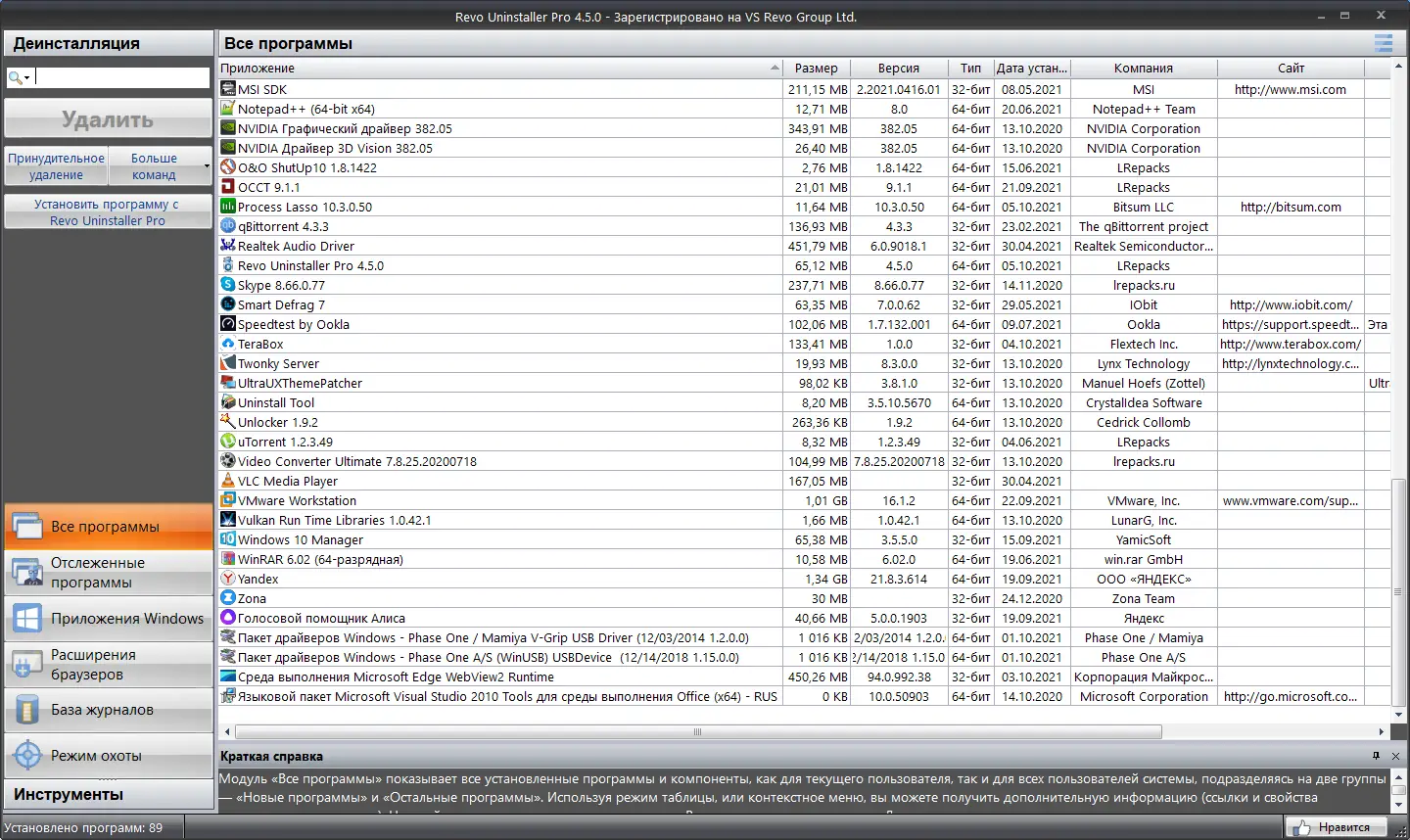 Revo Uninstaller — это мощная утилита для глубокого удаления программ и очистки системы от остаточных файлов, папок и записей реестра. Программа сочетает в себе высокую точность сканирования и удобный интерфейс, обеспечивая полное удаление ненужного программного обеспечения. Благодаря продвинутым функциям, она подходит как для новичков, так и для продвинутых пользователей, стремящихся поддерживать систему в оптимальном состоянии.