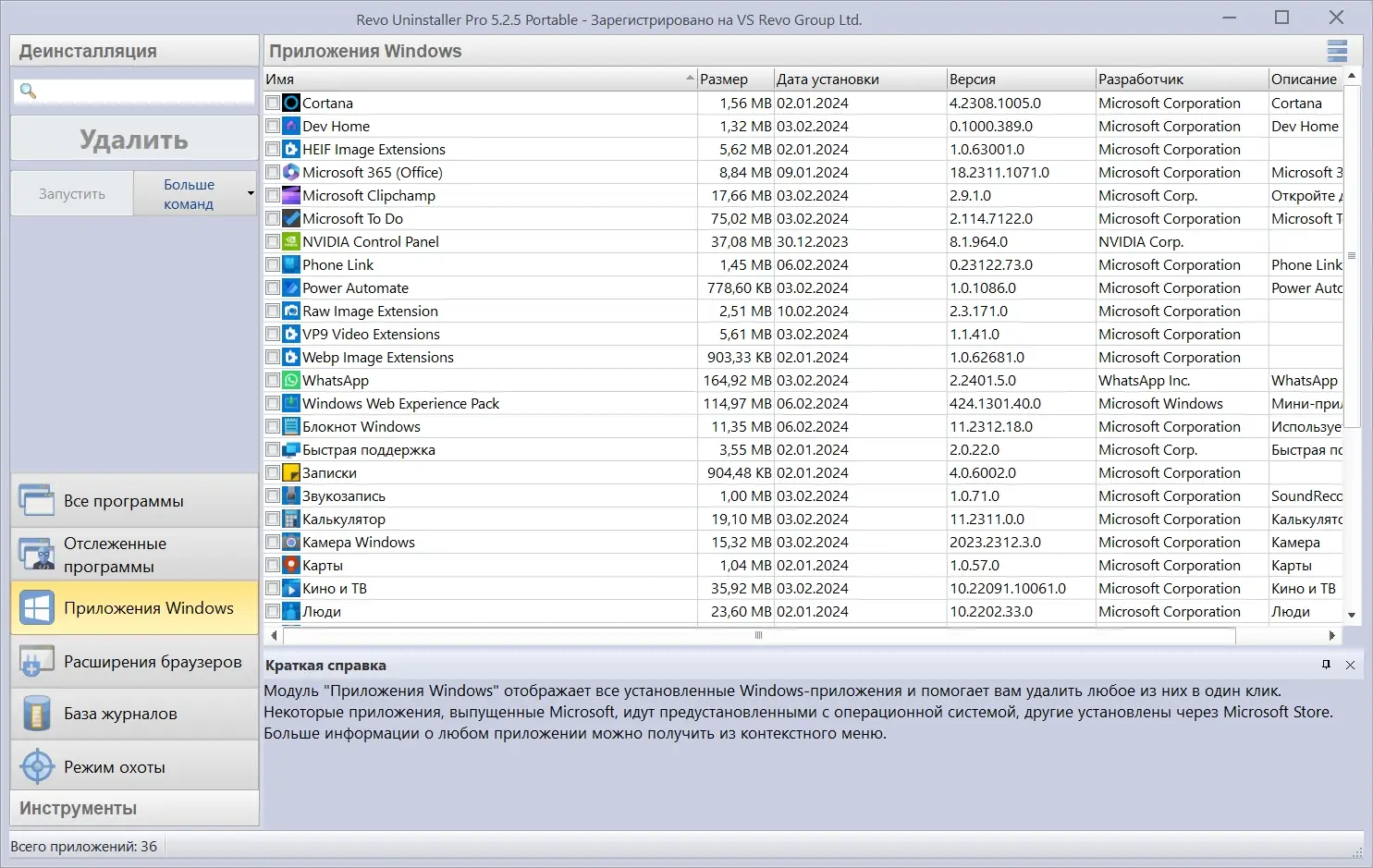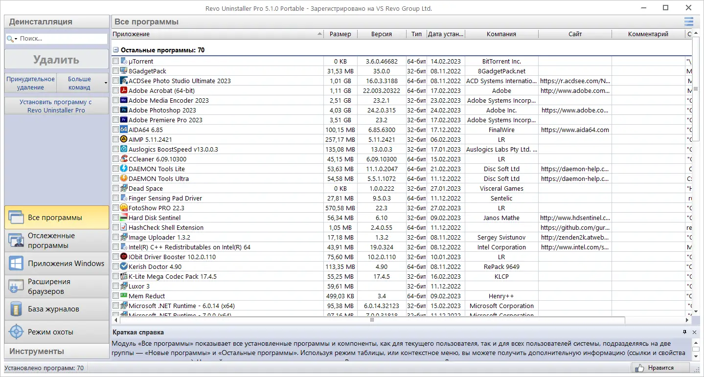 Revo Uninstaller — это мощная утилита для глубокого удаления программ и очистки системы от остаточных файлов, папок и записей реестра. Программа эффективно справляется с деинсталляцией даже тех приложений, которые не отображаются в стандартном списке установленных. Благодаря продвинутым алгоритмам сканирования и уникальному режиму «Охотник», она обеспечивает чистоту системы и высвобождает дисковое пространство.