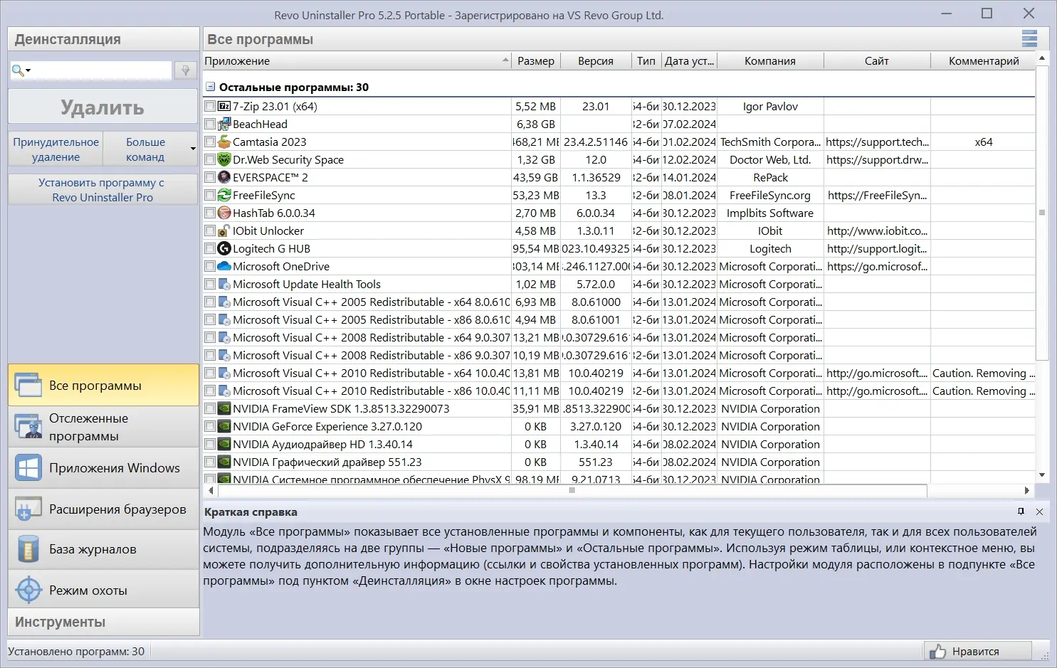 Описание Revo Uninstaller