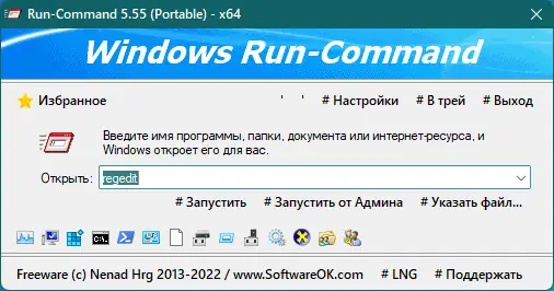 Run-Command — это компактная системная утилита, призванная заменить стандартное окно «Выполнить» в Windows, расширяя его функционал за счёт дополнительных возможностей управления командами, быстрым доступом к системным инструментам и поддержкой портативного режима. Программа не требует установки, поддерживает запуск от имени администратора и позволяет эффективно организовывать часто используемые команды.
