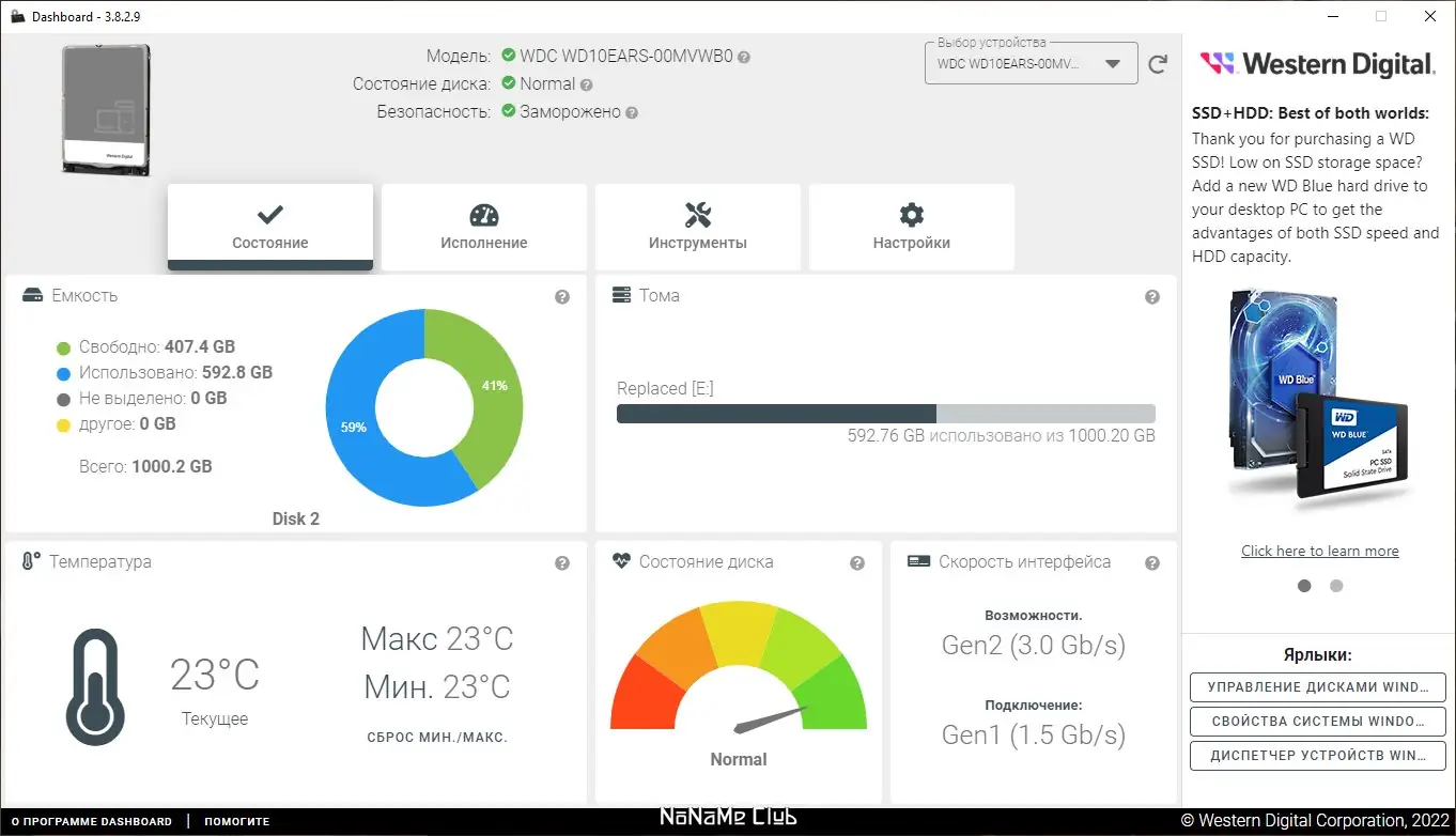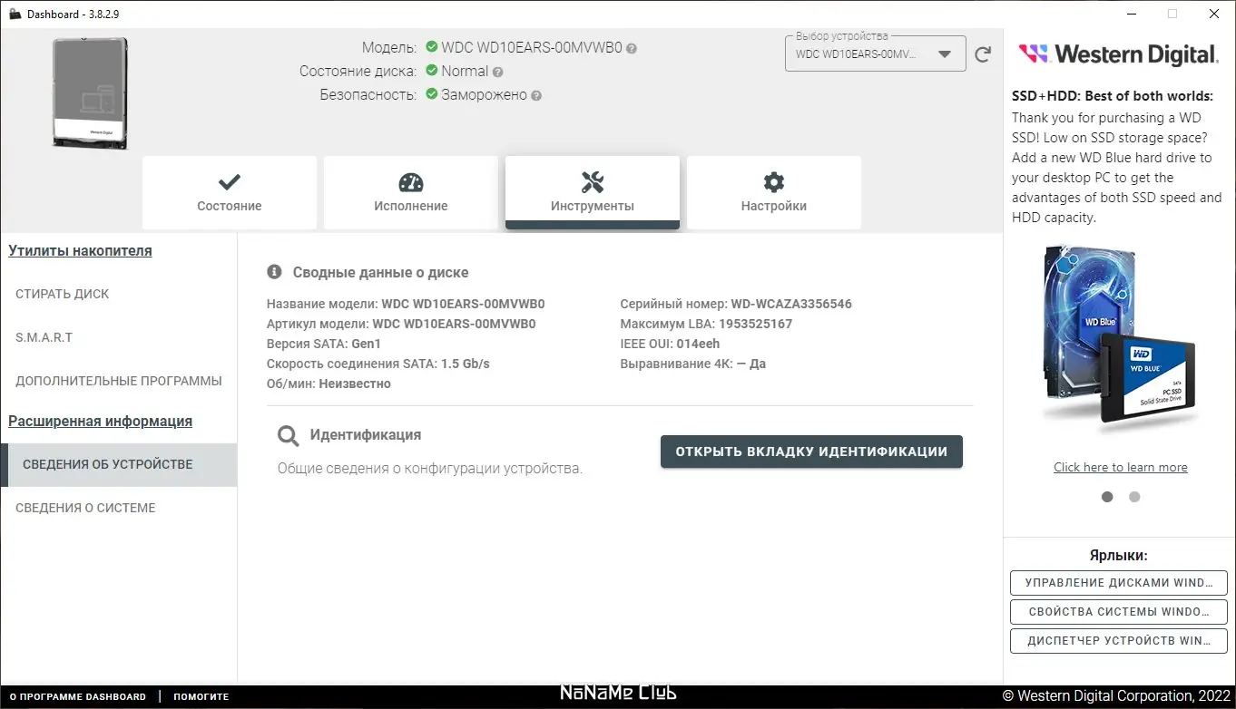 - Доступ к данным S.M.A.R.T. для глубокой диагностики накопителя