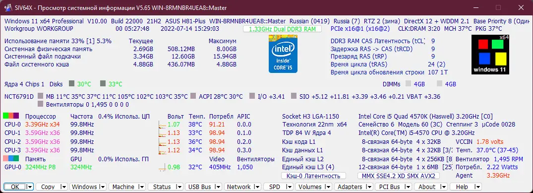 SIV — это компактное, но мощное приложение, разработанное для глубокого анализа конфигурации компьютера. Утилита собирает и отображает информацию о всех ключевых компонентах системы, позволяя пользователю быстро оценить состояние оборудования и программной среды. Интерфейс организован в виде вкладок, каждая из которых посвящена определённой категории данных — от ЦП и оперативной памяти до периферийных устройств и сетевых подключений.