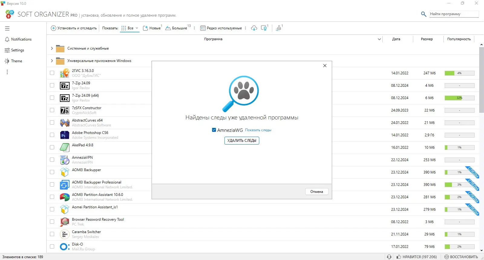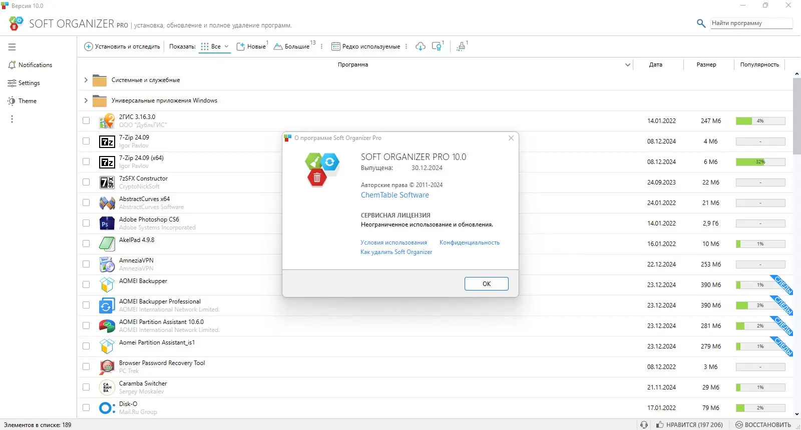 Soft Organizer — это мощная утилита для полного удаления программ из операционной системы, обеспечивающая очистку всех следов: файлов, папок, записей в реестре и других остаточных данных. В отличие от стандартного деинсталлятора Windows, программа отслеживает изменения в системе на всех этапах установки приложений, что позволяет провести максимально точное и глубокое удаление. Идеальное решение для тех, кто заботится о стабильности и производительности компьютера.