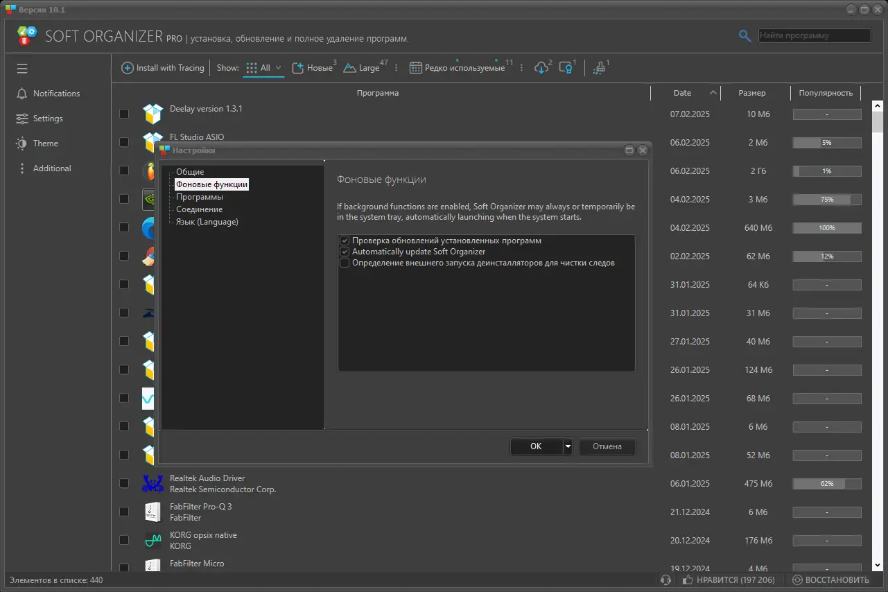 Преимущества Soft Organizer заключаются в высокой скорости работы и точности анализа системных изменений. В отличие от аналогов, которые сравнивают состояние системы до и после установки, эта утилита анализирует изменения в реальном времени, что ускоряет процесс и снижает нагрузку на ресурсы. Интерфейс адаптирован под тёмную тему, а навигация по функциям упрощена за счёт переноса настроек в контекстные кнопки. Версия pro 10.20 предлагает расширенные возможности, включая поиск следов ранее удалённых программ и автоматическое обновление установленного ПО. Однако в сборке RePack отсутствует функция обновления, что является компромиссом для пользователей, предпочитающих альтернативные источники.