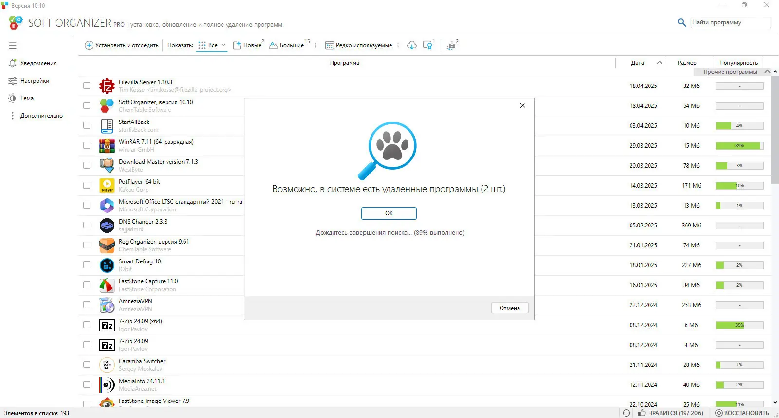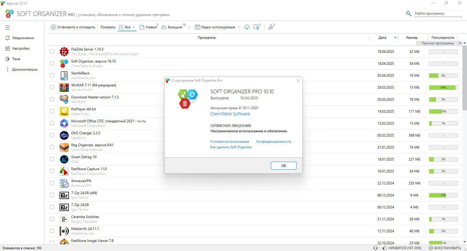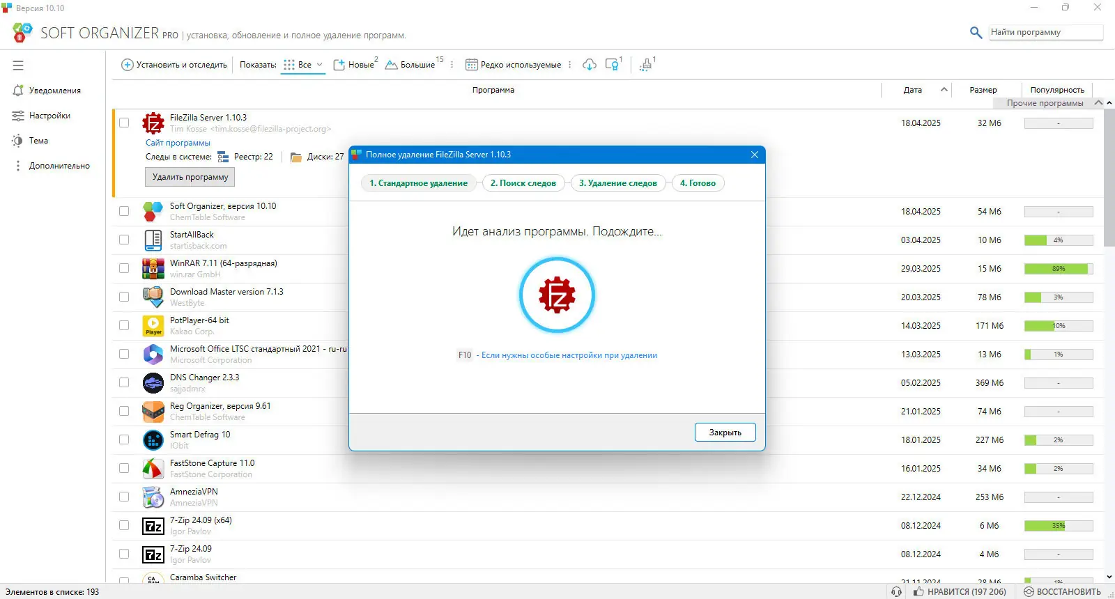 Soft Organizer — это утилита для полного удаления программ с компьютера, способная очистить систему от остатков, которые остаются после стандартного деинсталлятора. Программа отслеживает изменения в системе при установке приложений и обеспечивает чистое удаление без следов в реестре и на диске. Подходит для пользователей, стремящихся поддерживать систему в порядке и избегать накопления мусорных файлов.