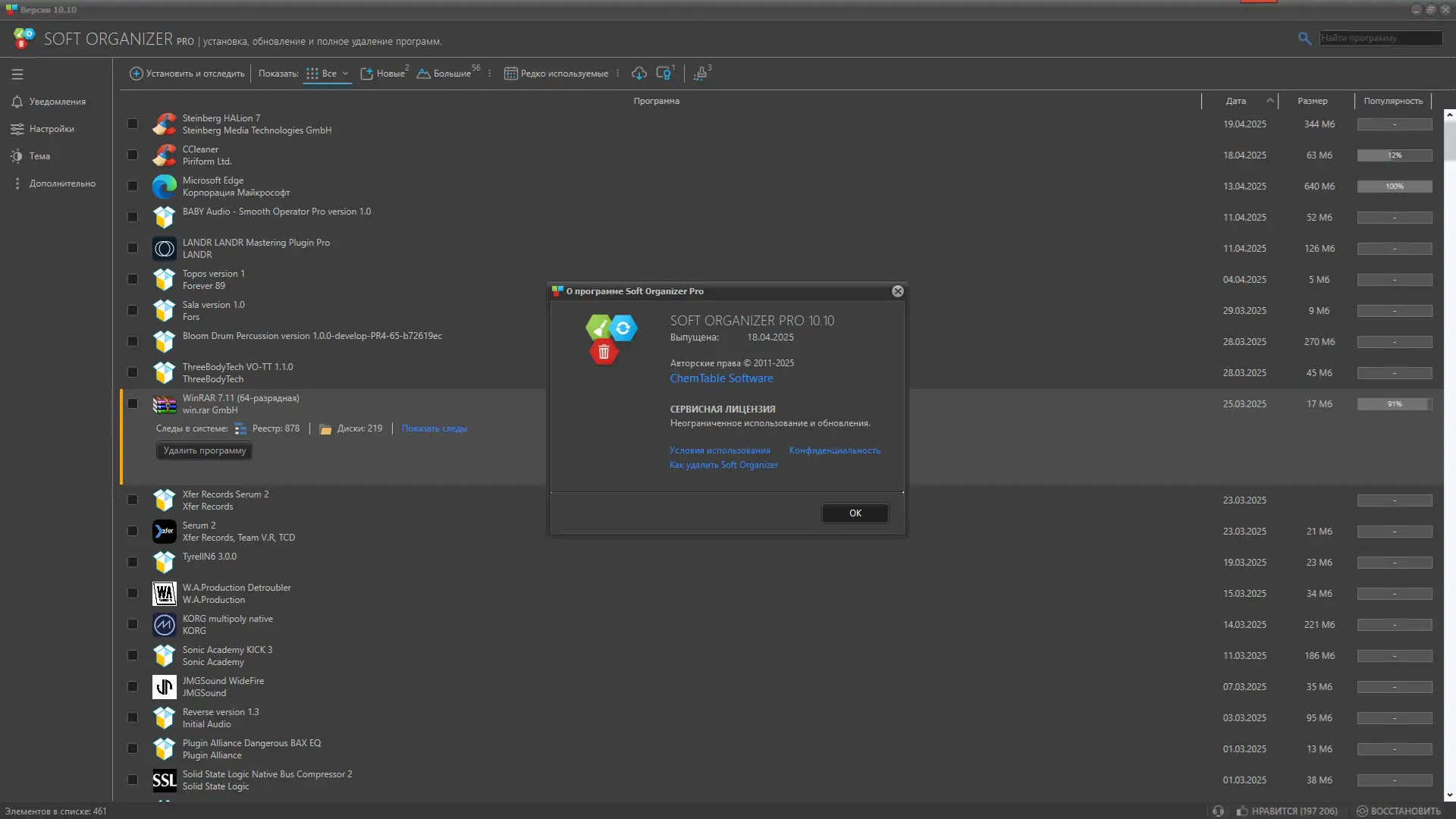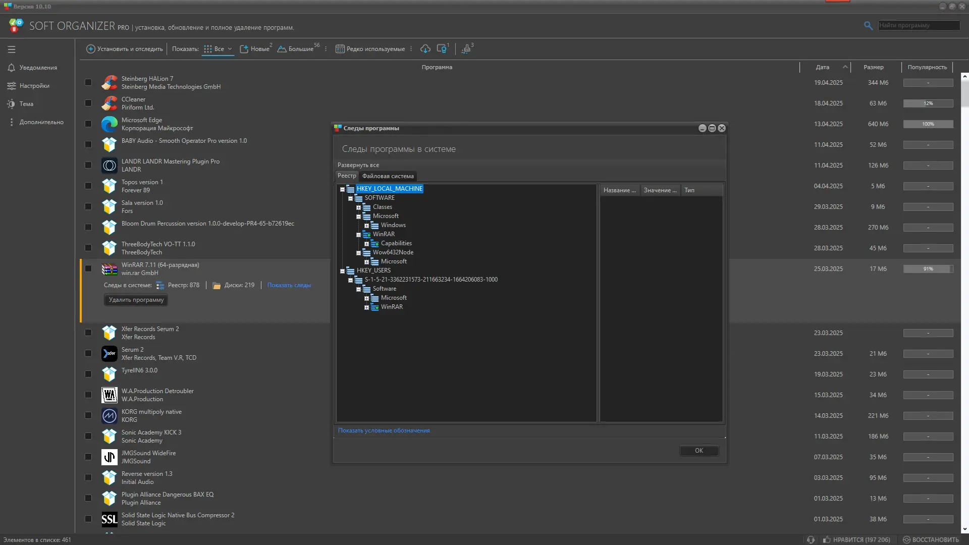 Soft Organizer — это утилита для полного удаления программ с компьютера, обеспечивающая чистку остатков в реестре, файлах и папках после деинсталляции. С её помощью система остаётся в идеальном состоянии без следов от ненужных приложений. Программа подходит для пользователей, стремящихся к оптимальной производительности и порядку в установленном ПО.