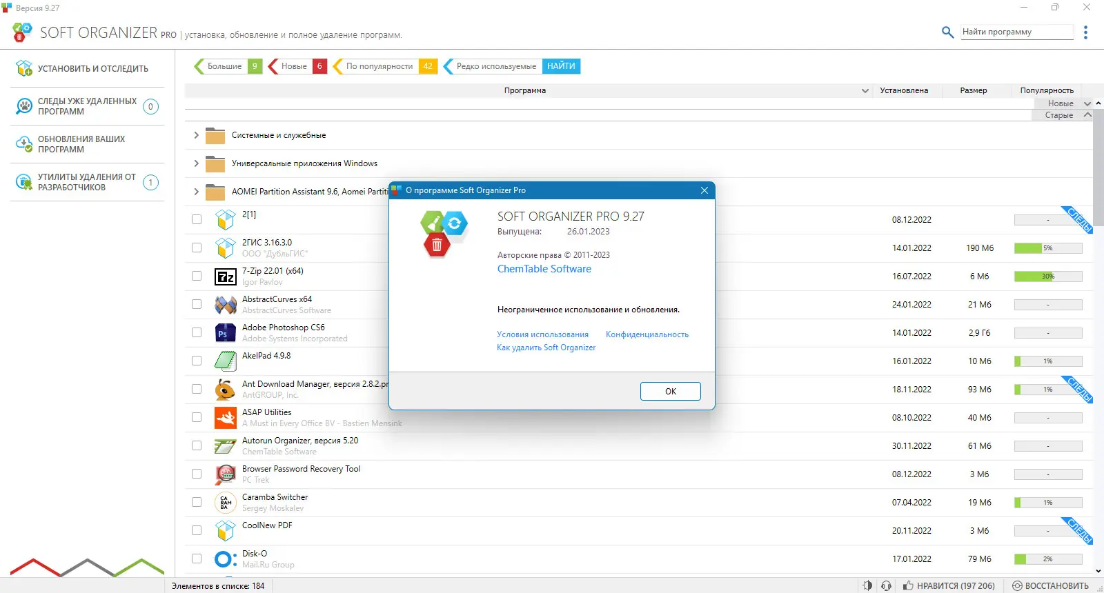 Soft Organizer — это инструмент для полного удаления программ, способный очистить систему от остатков деинсталлированных приложений, включая файлы, папки и записи реестра. Программа отслеживает изменения в системе во время установки, обеспечивая глубокое и точное удаление без следов. Подходит для пользователей, стремящихся поддерживать чистоту и стабильность операционной системы.