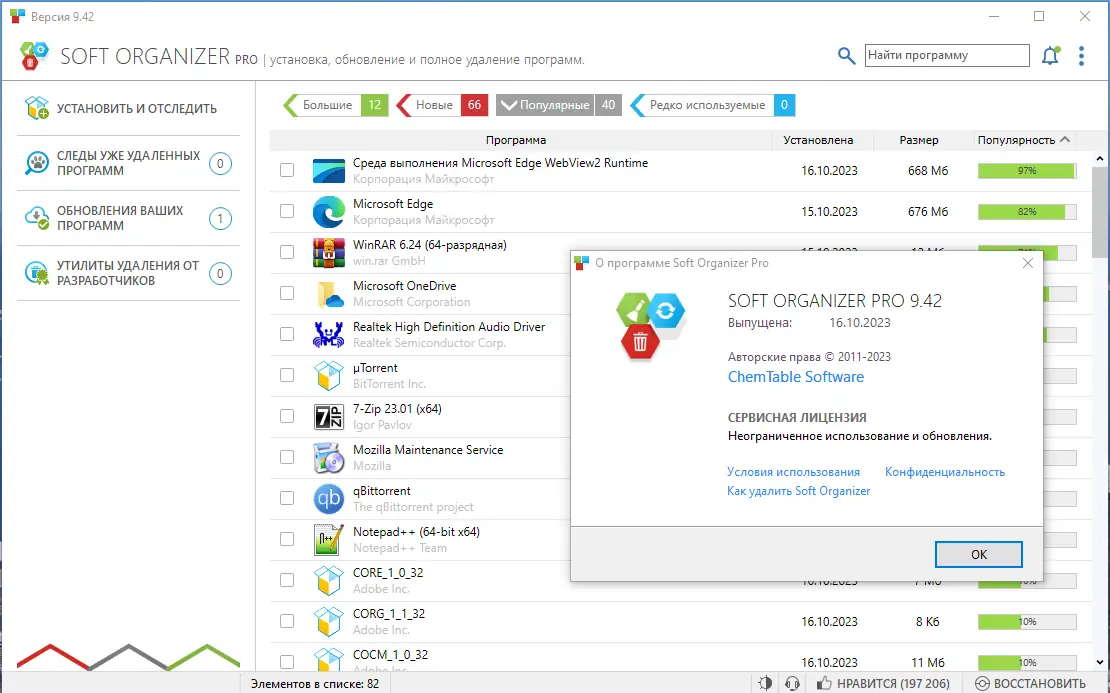 Soft Organizer разработан для тех, кто сталкивается с проблемой неполного удаления программ. Даже при использовании встроенных деинсталляторов в системе остаются временные файлы, настройки, библиотеки и записи в реестре, которые со временем замедляют работу компьютера. Эта утилита решает проблему кардинально — она фиксирует все изменения, вносимые при установке программы, и при удалении удаляет не только основные компоненты, но и все сопутствующие следы. Это делает Soft Organizer незаменимым инструментом для глубокой оптимизации системы.