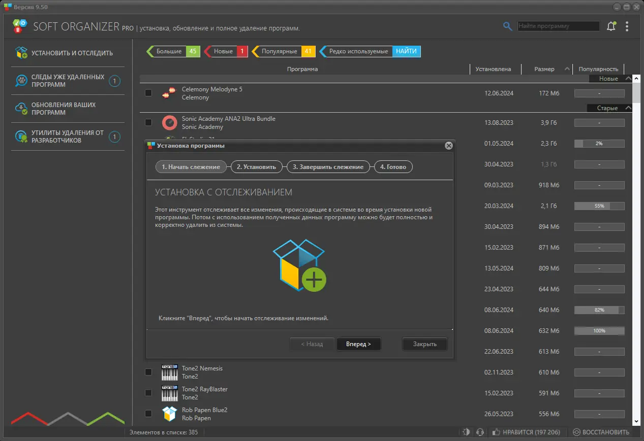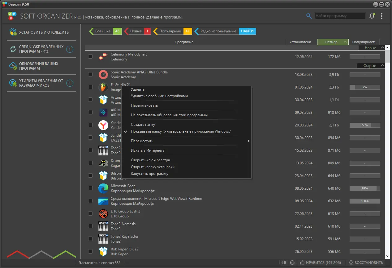 Программа эффективно отслеживает изменения, вносимые в систему при установке любого приложения. Благодаря технологии мониторинга в реальном времени, Soft Organizer фиксирует создание файлов, модификацию папок и правок в реестре. Это позволяет в дальнейшем выполнить чистое удаление без ручного поиска следов. Утилита поддерживает как классические программы, так и приложения, установленные через Windows Installer, что расширяет её совместимость. Даже если деинсталлятор не удалил все компоненты, Soft Organizer справится с этой задачей.