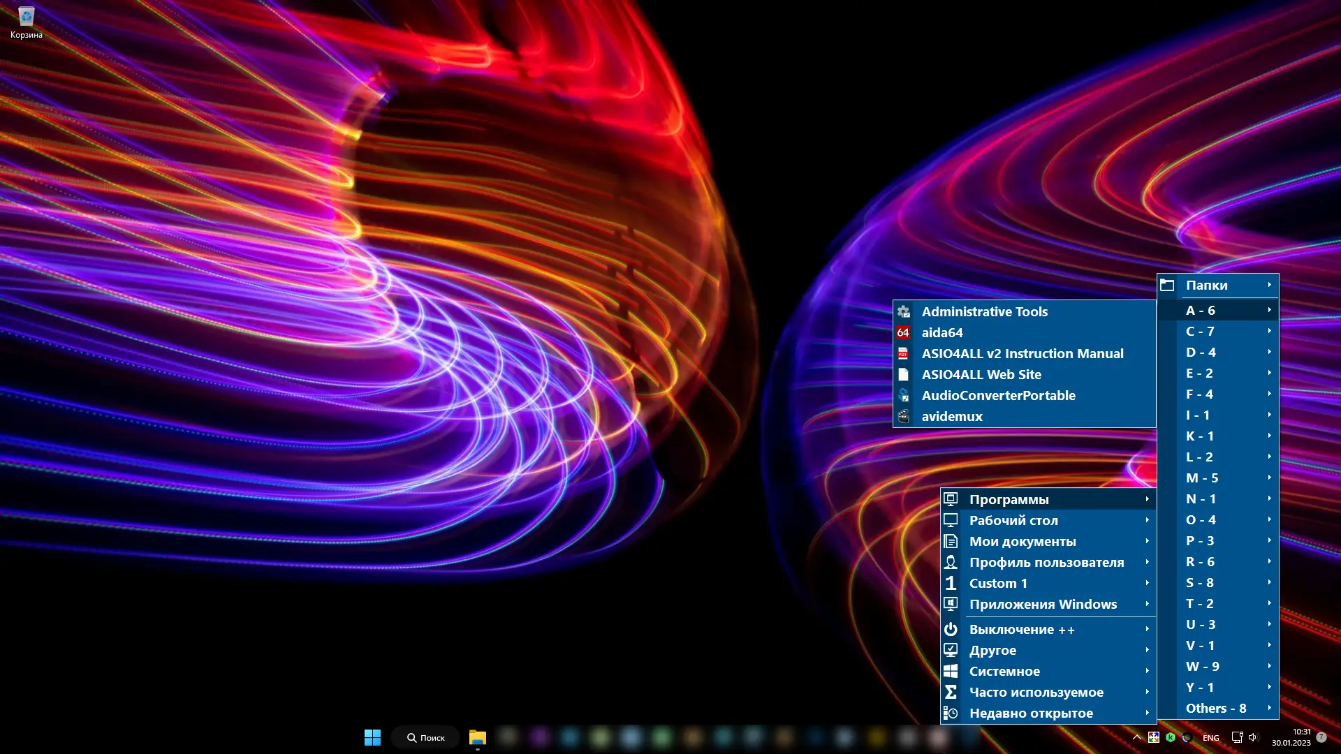 Запуск программы не требует инсталляции — достаточно запустить исполняемый файл. После старта меню становится доступно по горячей клавише или при наведении курсора в заранее заданный угол экрана. В настройках можно выбрать начальную папку для отображения, задать количество отображаемых пунктов и настроить порядок их сортировки. Для смены языка интерфейса предусмотрена вкладка «Others > Languages». Чтобы избежать конфликтов с панелью задач в Windows 11, рекомендуется выравнивать её по левому краю.