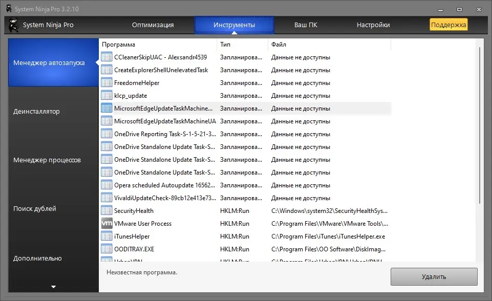 - Менеджер автозагрузки, позволяющий отключать нежелательные программы при старте системы