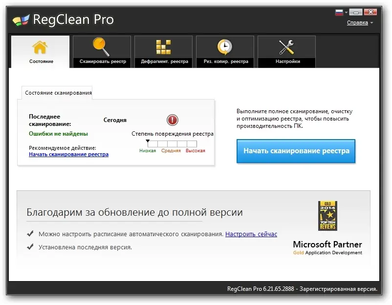 - Высокая точность обнаружения ошибок в реестре