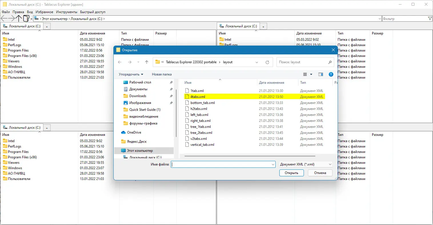 Tablacus Explorer представляет собой альтернативу стандартному проводнику Windows, ориентированную на пользователей, которым требуется больше функций, но не хочется переходить на сложные двухпанельные оболочки. Интерфейс программы интуитивно понятен и по умолчанию имитирует внешний вид родного Проводника, что упрощает адаптацию. При этом доступна работа с двумя или четырьмя панелями, а также поддержка неограниченного количества вкладок на каждой из них.