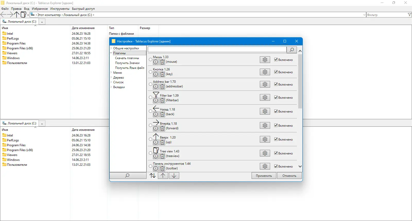 Запуск Tablacus Explorer осуществляется двойным кликом по исполняемому файлу — TE32.exe для 32-битных систем или TE64.exe для 64-битных. После старта пользователь видит привычный интерфейс, похожий на проводник Windows, с панелью навигации, адресной строкой и областью отображения файлов. Для создания новой вкладки можно перетащить папку на панель вкладок или воспользоваться контекстным меню. Настройка функционала выполняется через раздел «Инструменты», где доступен менеджер плагинов — отсюда можно загружать и активировать дополнительные модули. После настройки под свои нужды конфигурацию можно сохранить как профиль, чтобы быстро переключаться между различными рабочими средами. Программа запоминает состояние окон, открытые вкладки и позицию окна, обеспечивая комфорт при каждом запуске.