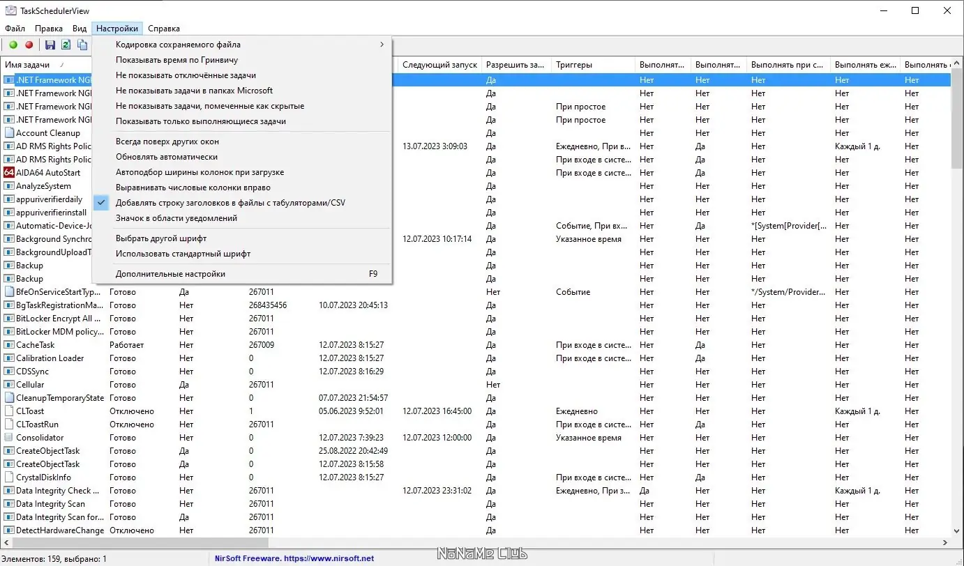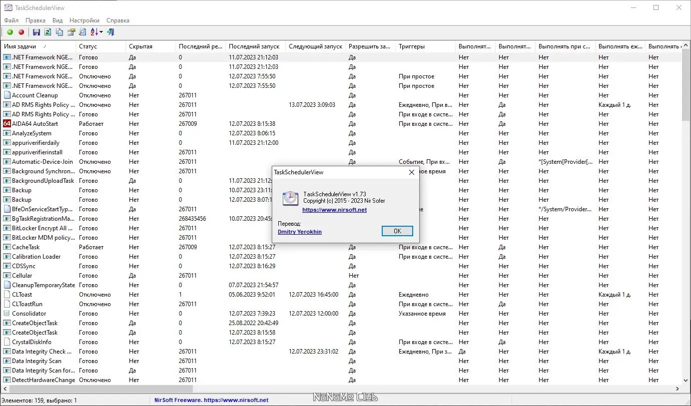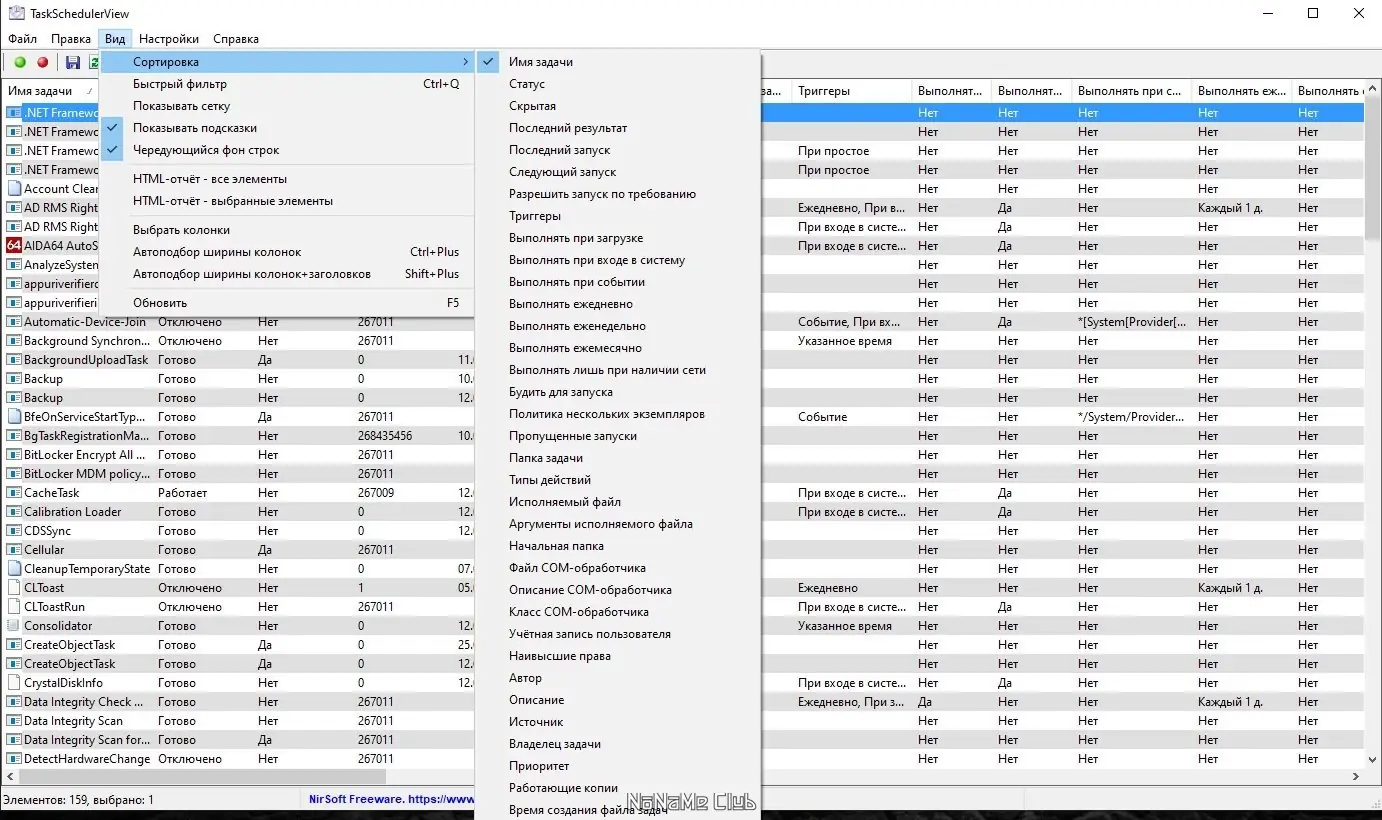 Запуск утилиты происходит в один клик — после открытия исполняемого файла отображается таблица со всеми задачами, доступными в системе. Пользователь может сортировать строки по любому столбцу, например, по дате последнего запуска или по статусу. Для управления задачами используются контекстное меню или кнопки на панели инструментов: можно отключить задачу, включить её повторно, открыть в стандартном планировщике или скопировать информацию для анализа.
