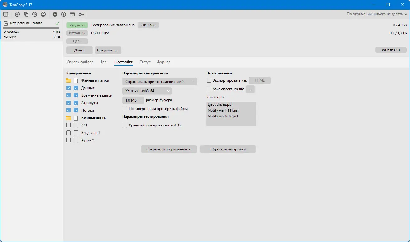 Даже при сбоях чтения TeraCopy не прерывает весь процесс, а пропускает только проблемные элементы, позволяя завершить основную часть работы.