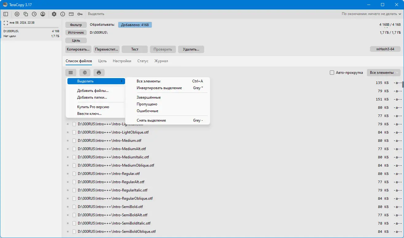 - Полный функционал доступен только в версии TeraCopy pro, которая требует лицензии