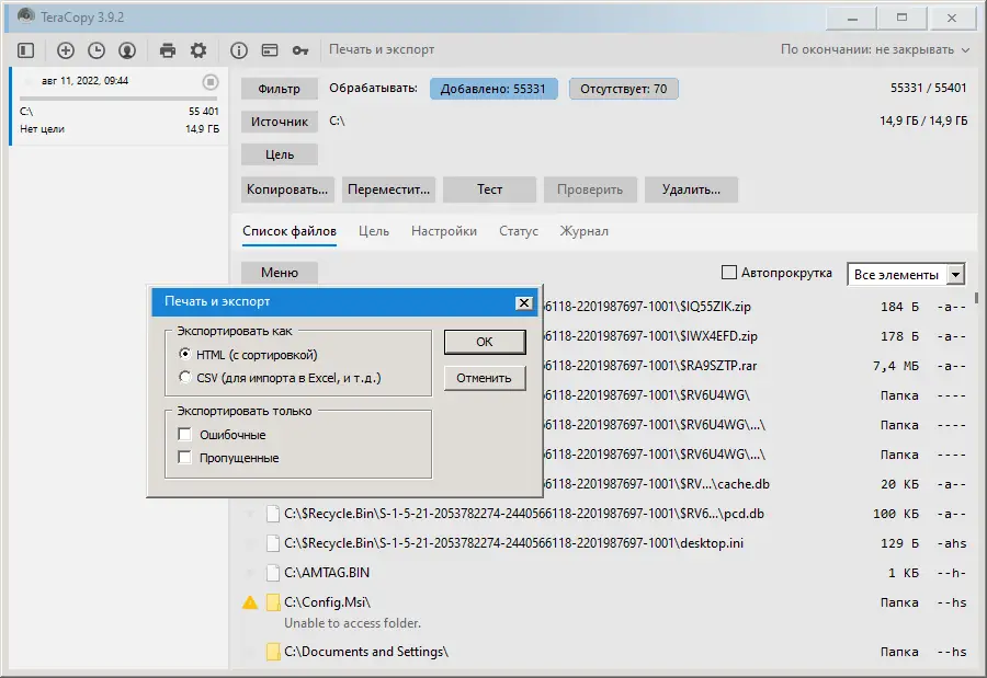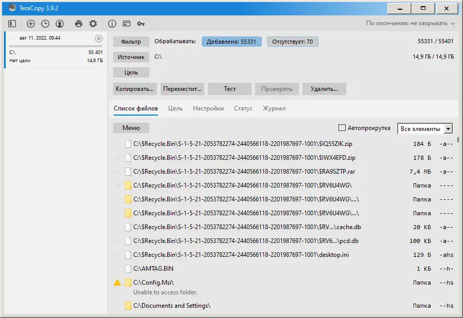 - Пропуск проблемных файлов без остановки всего процесса копирования.