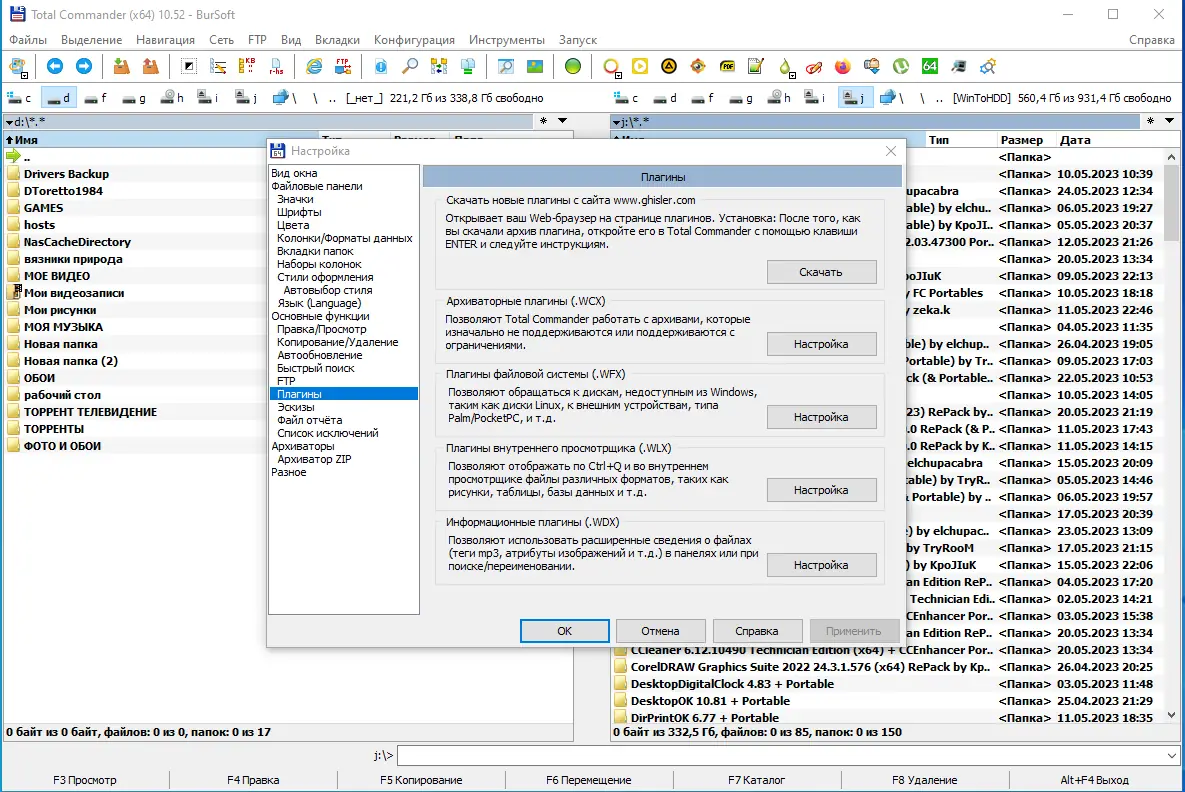 Использование Total Commander интуитивно понятно благодаря двойной панели, которая позволяет одновременно отображать содержимое двух каталогов. Пользователь может быстро копировать, перемещать, сравнивать и синхронизировать данные между дисками или папками. Горячие клавиши значительно ускоряют навигацию, а встроенные листеры позволяют просматривать содержимое файлов без запуска внешних программ. Для расширения функционала доступны плагины, которые подключаются через меню или горячие клавиши. Например, просмотр PDF-документов осуществляется через sLister, а анализ мультимедиа — через MediaInfoWDX. Особое внимание уделено работе с архивами: поддерживаются RAR, 7-Zip и другие форматы благодаря встроенным модулям RAR и Total7zip.