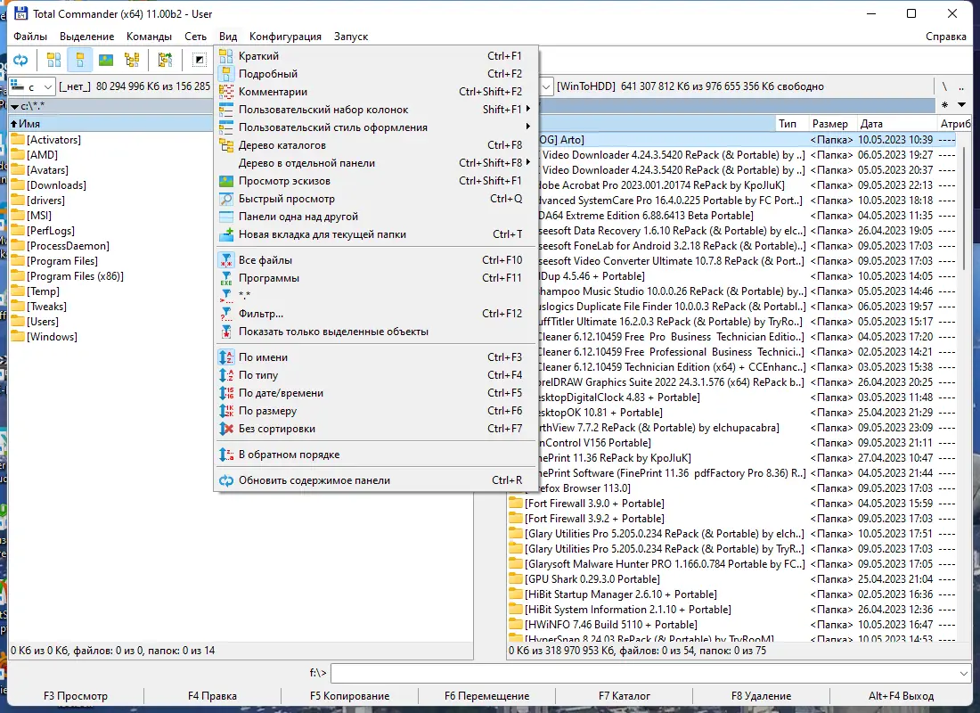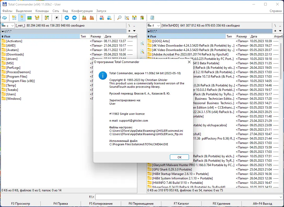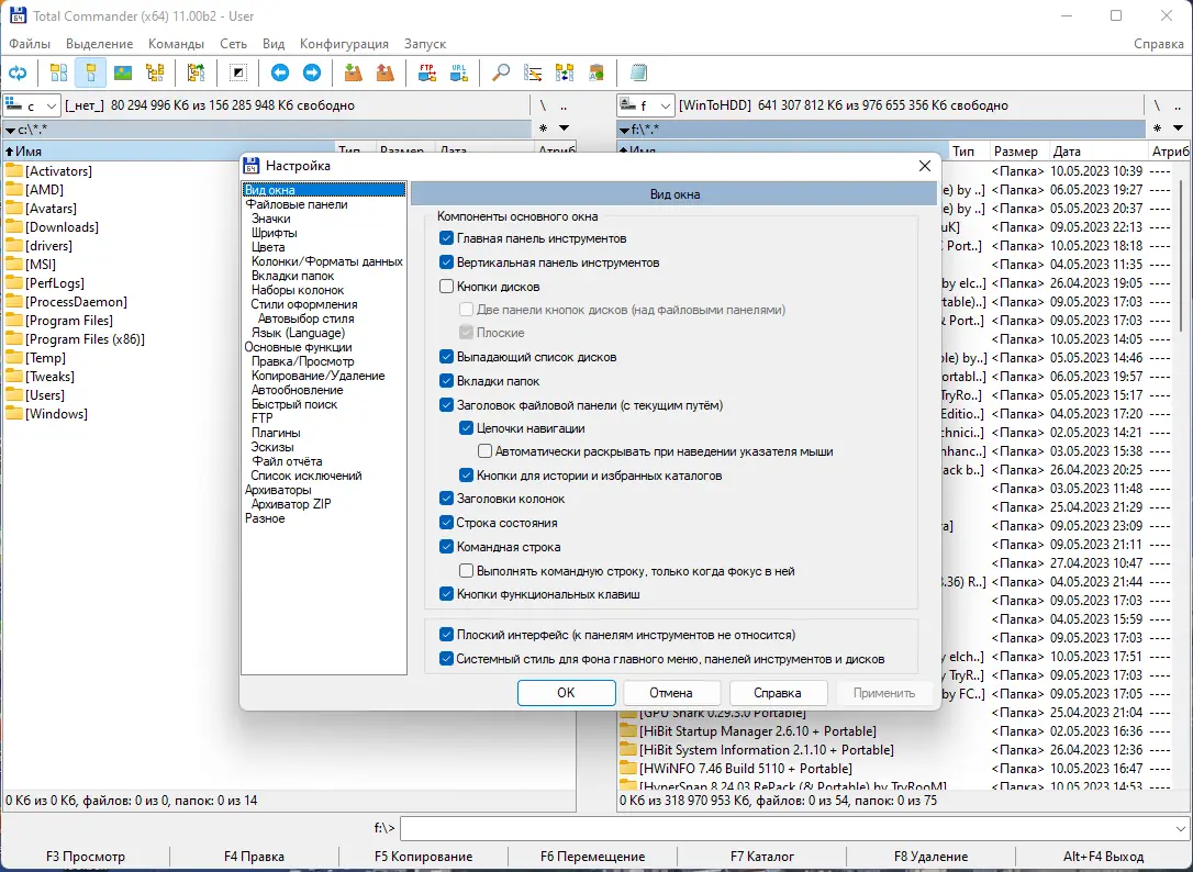 Двухпанельный интерфейс остаётся ключевой особенностью, обеспечивая высокую скорость выполнения операций между разными разделами диска или сетевыми ресурсами.