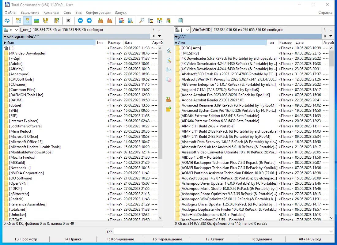 Total Commander предлагает продуманную архитектуру, ориентированную на эффективную навигацию по файловой системе. Двухпанельный интерфейс позволяет одновременно отображать содержимое двух каталогов, что ускоряет копирование, перемещение и сравнение файлов. Каждая панель может быть настроена независимо, включая отдельное дерево папок, что особенно удобно при работе на мониторах с широким экраном. Поддержка плагинов расширяет функциональность, позволяя интегрировать дополнительные форматы, облачные хранилища и инструменты обработки данных.