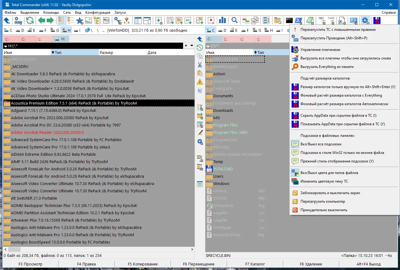 Портативная сборка Total Commander 11.02 — это мощный файловый менеджер для операционной системы Windows, расширенный плагинами, скриптами и дополнительными утилитами. Версия доступна в двух разрядностях — x32 и x64 — и автоматически подстраивается под архитектуру системы. В комплект входят инструменты для просмотра, архивации, поиска и редактирования файлов, а также встроенный мультимедиа-плеер с поддержкой LAV Filters. Сборка не требует установки и не оставляет следов в системе, что делает её идеальной для использования с флеш-накопителей.